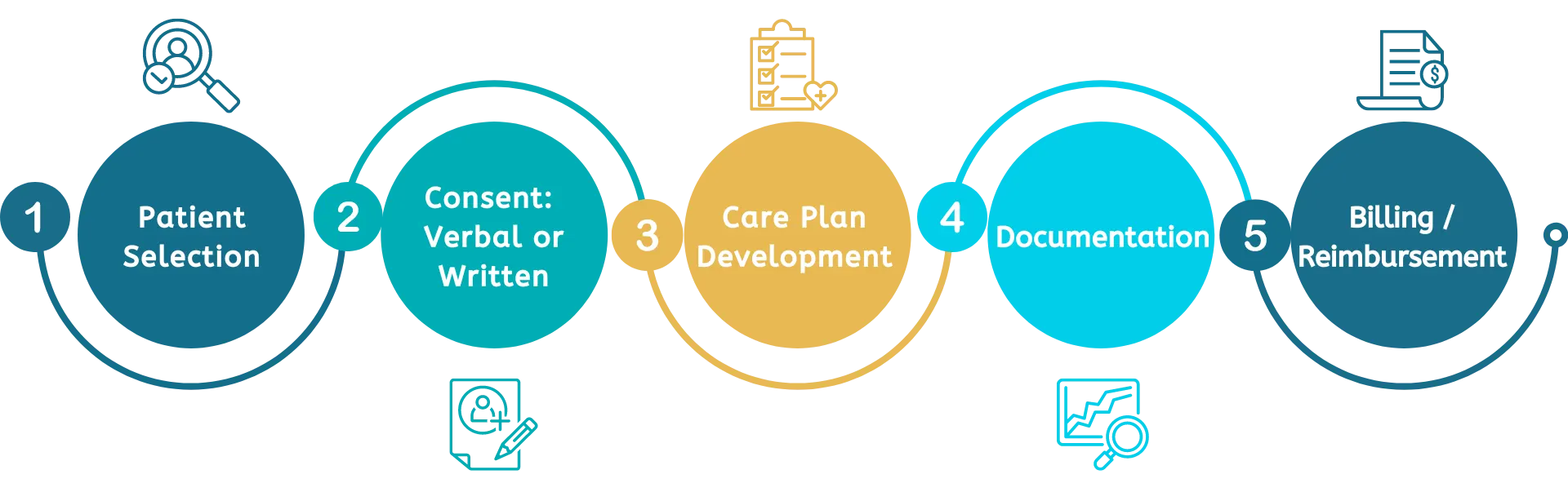 Each of these 5 steps can be customized to fit the needs of a practice. Communication can use high-touch, low-volume to capture all complex CCMs or the opposite to have widespread reach.